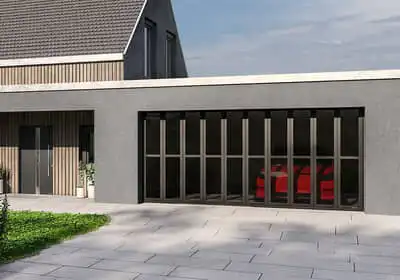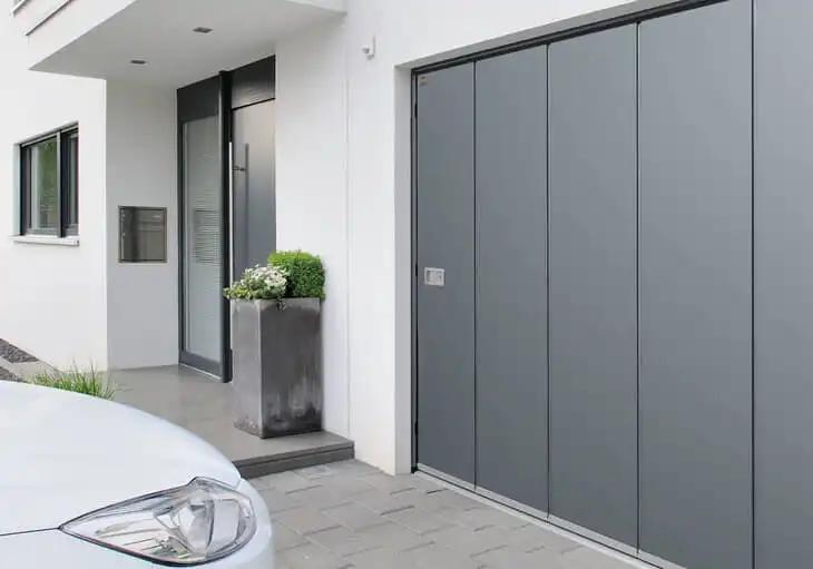Bramy segmentowe boczne otwierają się wzdłuż ściany bocznej garażu, co jest szczególnie przydatne w przypadku garaży przy nachyleniu dachu, niskim nadprożu lub istniejących instalacjach.