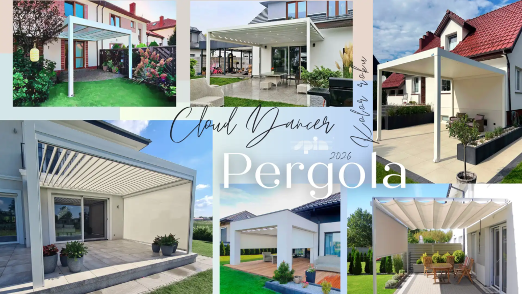 Pergola tarasowa w kolorze Pantone Cloud Dancer to trend 2026 roku
