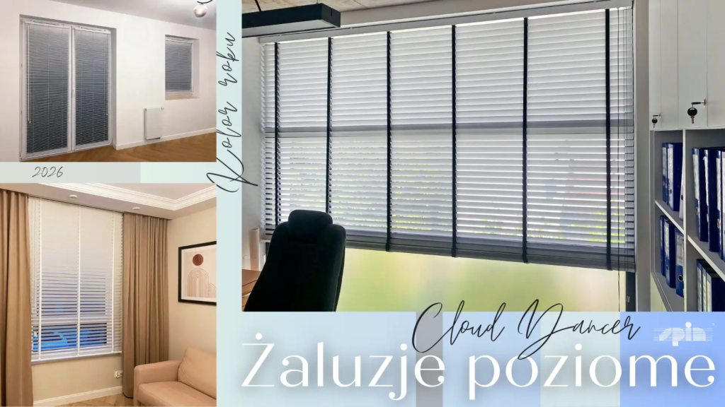 Żaluzje pionowe w odcieniu pantone kolor roku 2026 – Cloud Dancer
