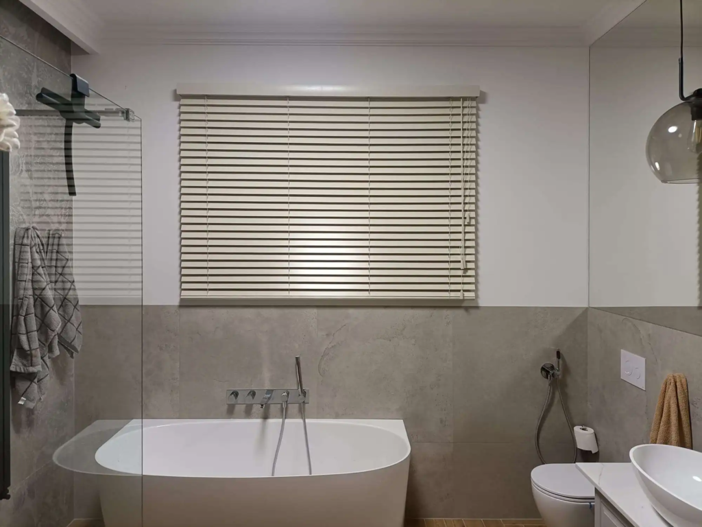 - Żaluzje bambusowe – stanowią lżejszą alternatywę, idealne dla wnętrz, w których liczy się subtelność, naturalność i lekkość konstrukcji. Mogą być stosowane w kuchni i łazience.