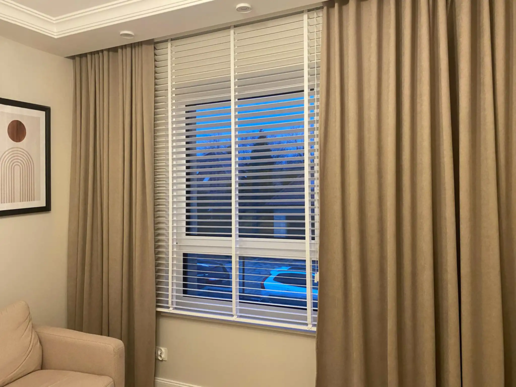 - Łatwe łączenie z tekstyliami – żaluzje drewniane doskonale komponują się z zasłonami, nadając wnętrzu przytulny i stylowy charakter.
